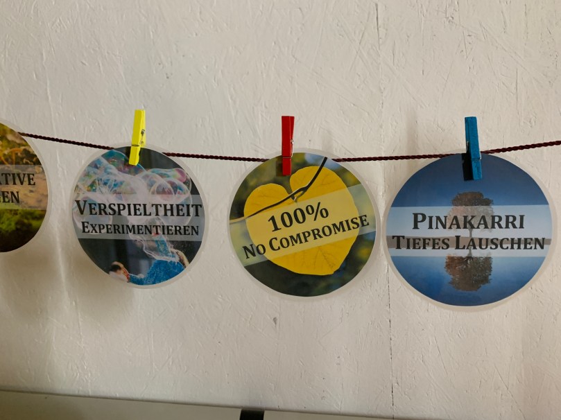 Bei momo&ronja haben wir von Beginn weg mit den drei Dimensionen „Dienst an der Erde“, „kooperatives Miteinander“ und „persönliche Entwicklung“ gedacht und gearbeitet. Diese Dimensionen sind auch im Dragon Dreaming wichtig: Nicht nur in der Haltung und Philosophie kommen sie vor, sondern auch ganz konkret auf der gemeinsamen Aufgabenplanungswand genannt Kirabirrdt. So werden diese übergeordneten Prinzipien greif- und lesbar. Sie können bewusst in der Planungphase gestaltet werden. Wie freue ich mich über diese Überschneidung!